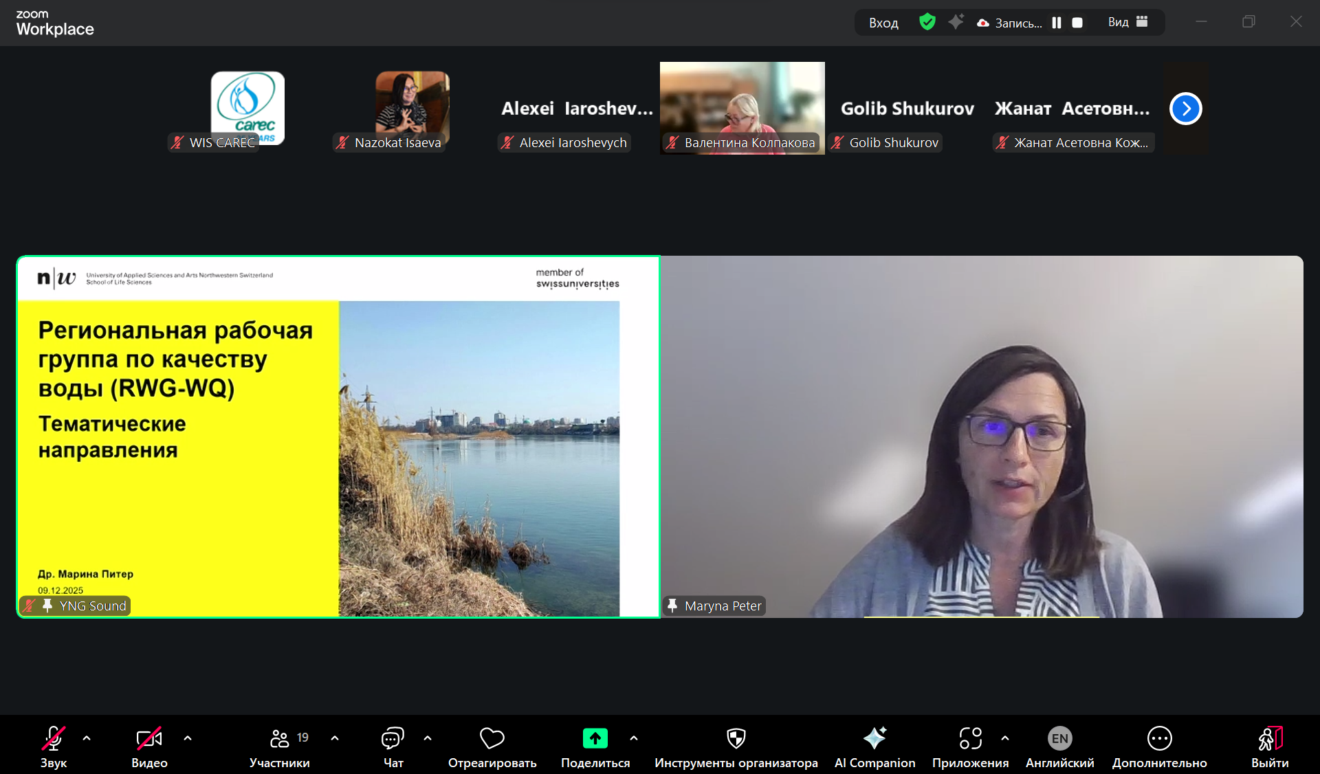 The RWG-WQ meeting was timed to coincide with the 8th meeting of the Kazakhstan-Uzbekistan Joint Working Group on Environmental Protection and Water Quality in the Syr Darya River Basin, held on December 11, 2025.