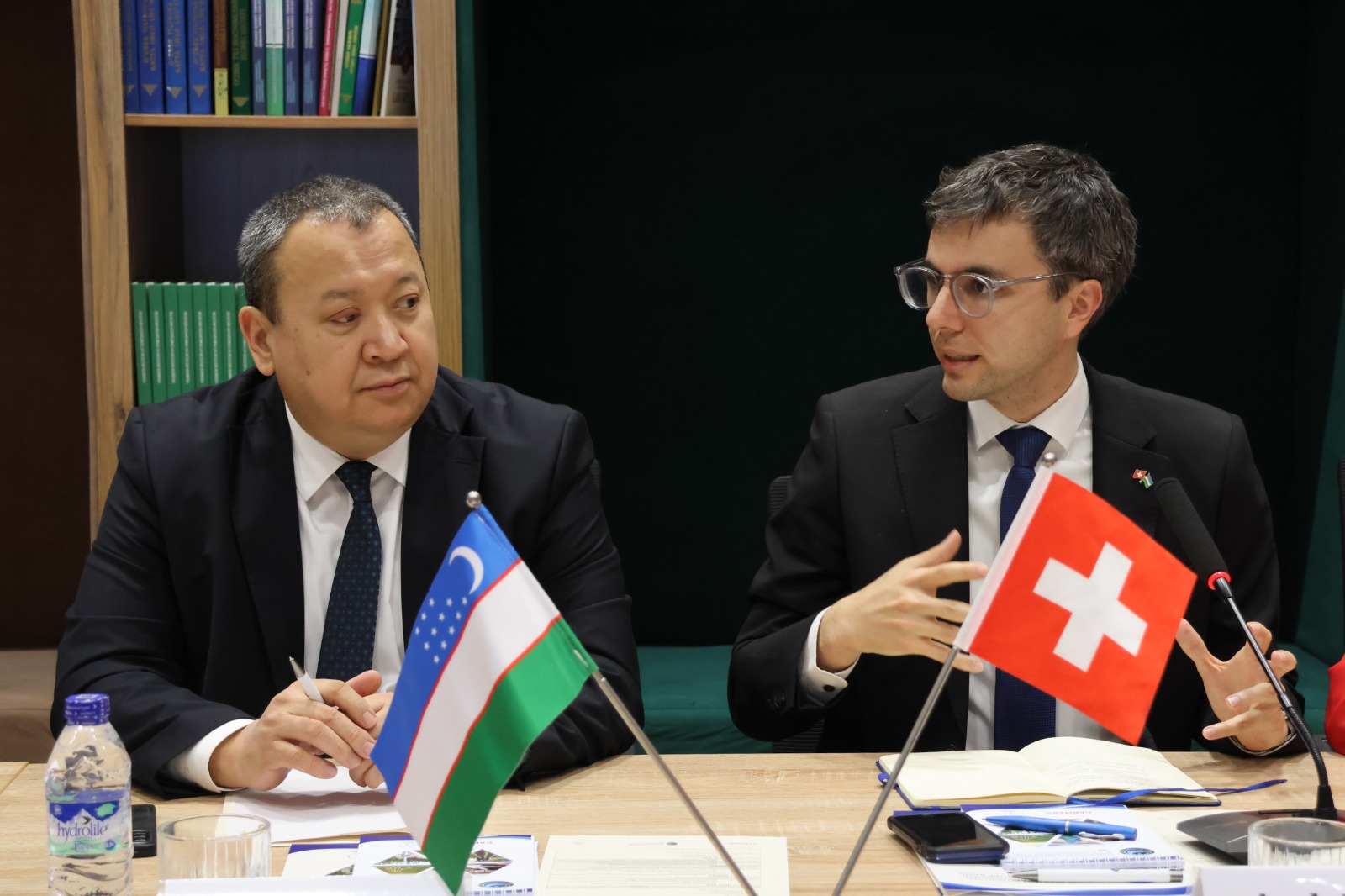 The meeting was co-chaired by Dr. Jusipbek Kazbekov, Deputy Chair of the National Committee on Ecology and Climate Change, and Andrin Fink, Deputy Head of Mission of the Embassy of Switzerland in Uzbekistan and Head of Cooperation.