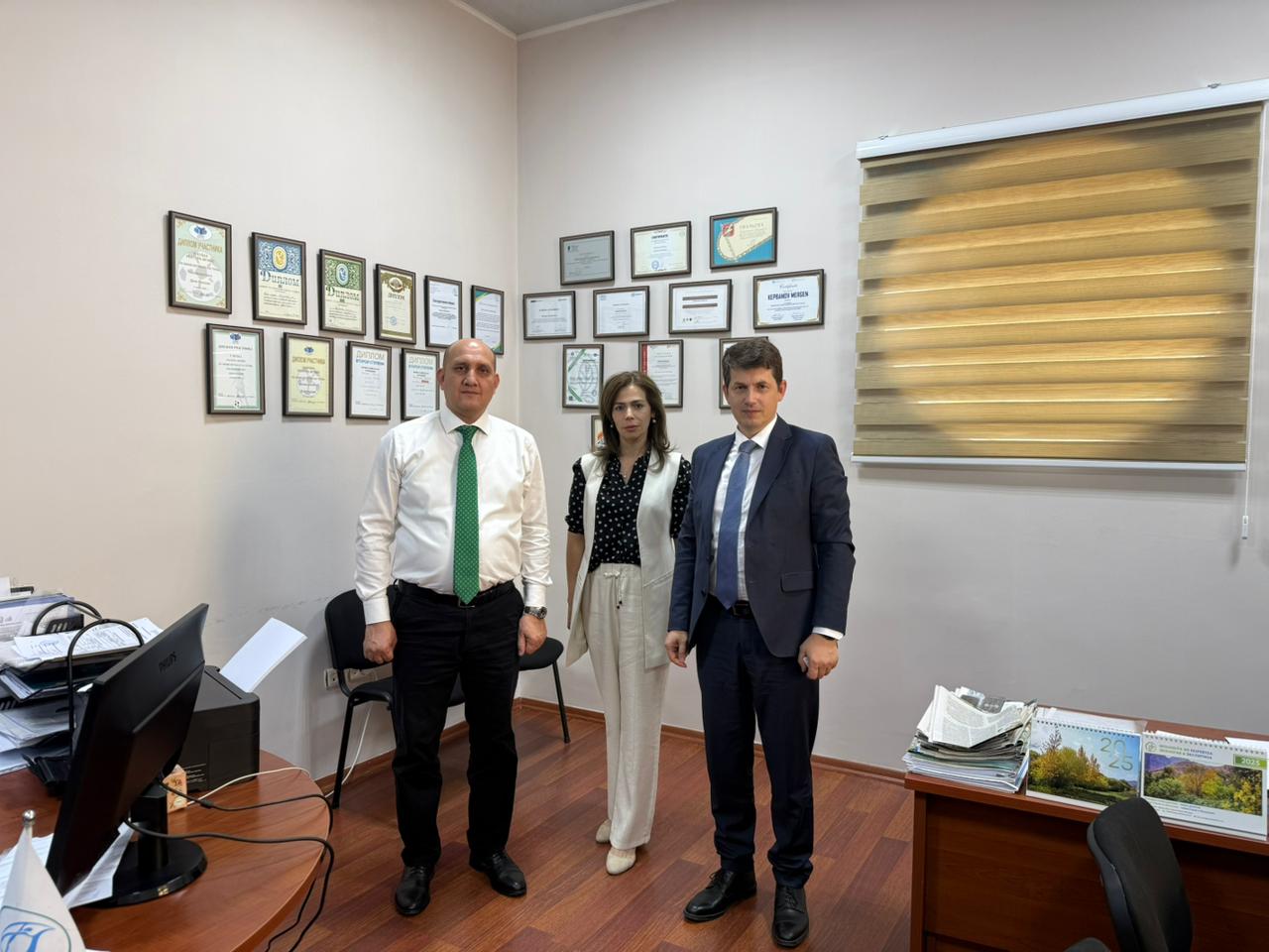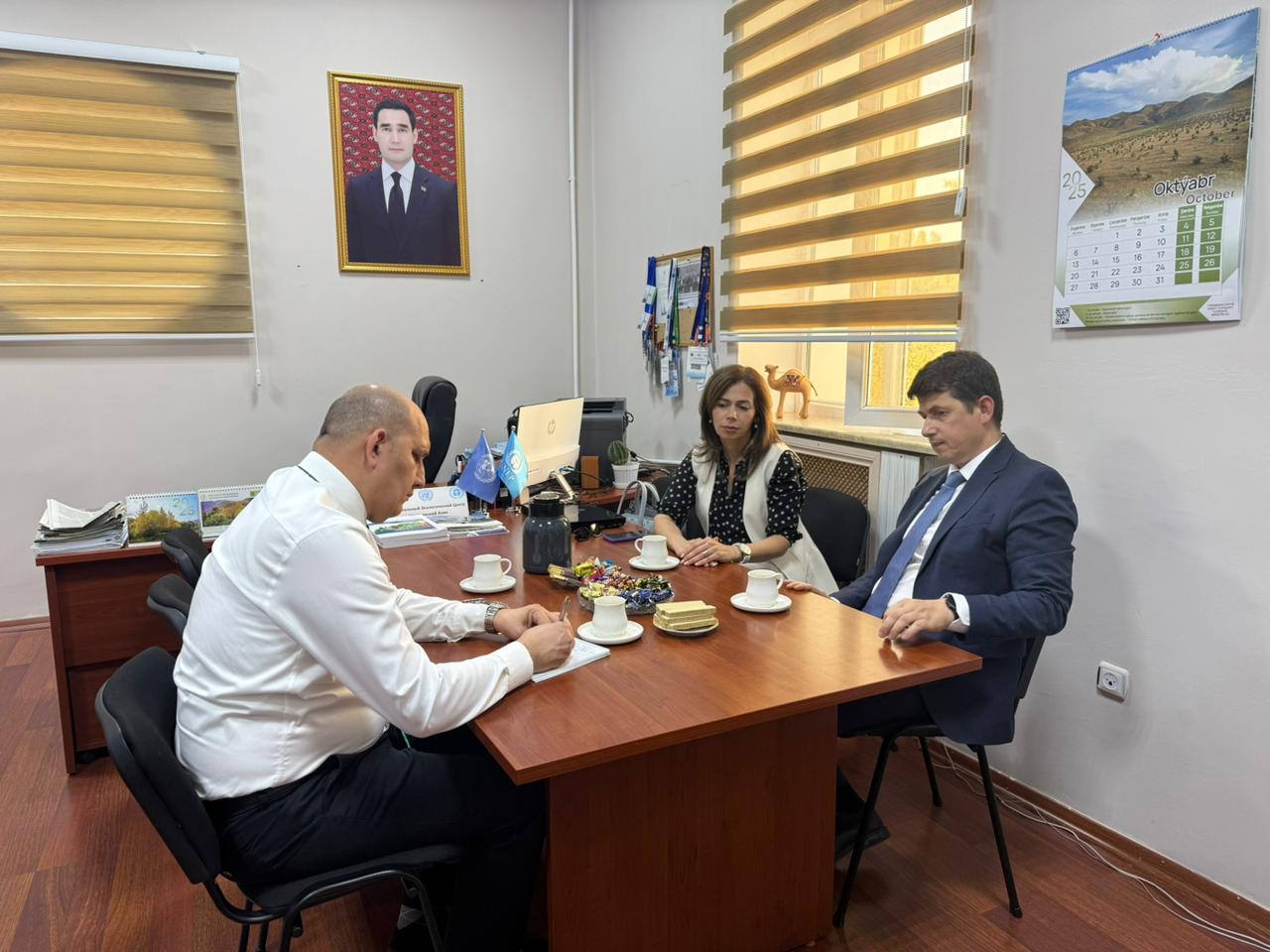 Ashgabat– Turkmenistan – October 24, 2025 – Mergen Kepbanov, Director of the Project Office of the Regional Environmental Centre for Central Asia (CAREC) in Turkmenistan, held a working meeting with representatives of the German Corporation for International Cooperation (GIZ) – Sergey Makarov, head of the regional program "Climate Risk Management in Central Asia", and Amangul Ovezberdiyeva, coordinator of the GIZ regional project "Climate Risk Management in Central Asia".