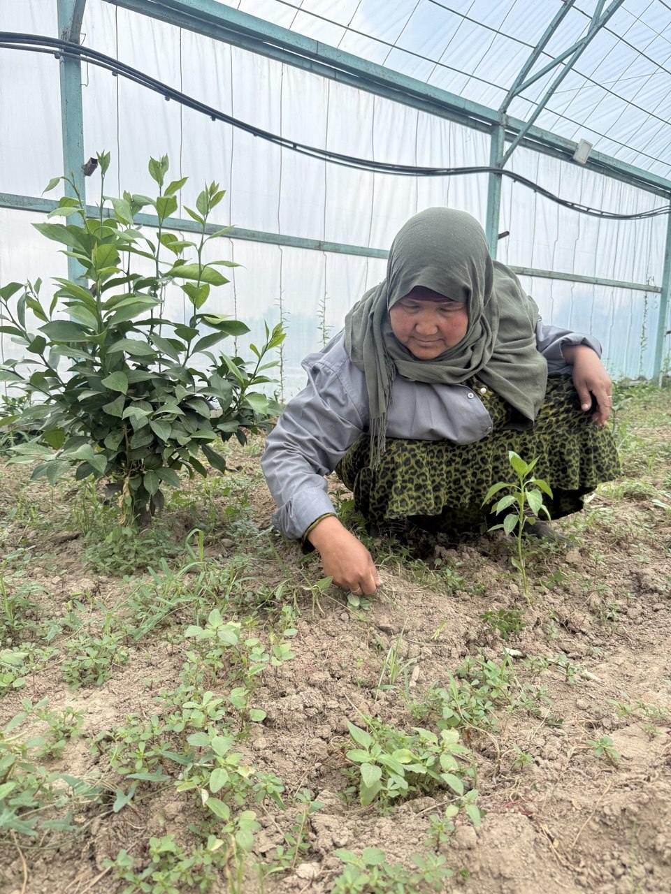 In addition, the family uses a greenhouse provided by the project, where they grow watermelons, melons, tomatoes, and other crops. The greenhouse allows them to harvest twice a year and generate additional income. During the season, 10 to 20 people work there, also benefiting from income opportunities.