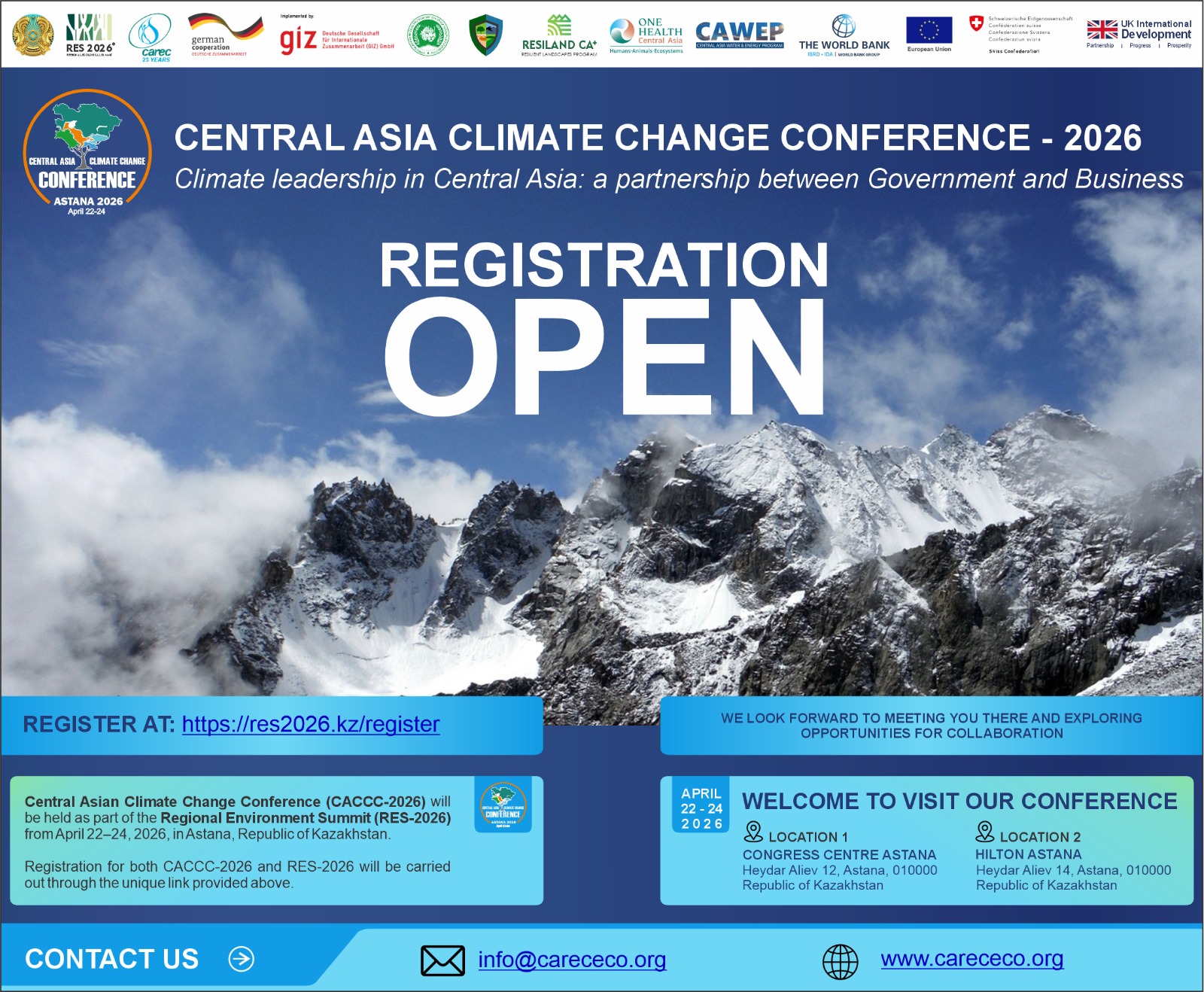 CACCC-2026 will take place from April 22 to 24, 2026 in Astana, the Republic of Kazakhstan, within the framework of the Regional Environmental Summit (RES-2026).
