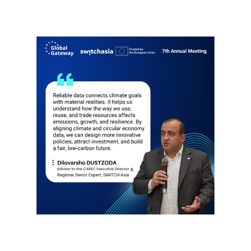 Concluding the panel, Dilovarsho Dustzoda emphasized the role of SWITCH-Asia in fostering collaboration between governments, industries, and development partners to harmonize data systems and make them consistent, credible, and useful for both policy and investment.