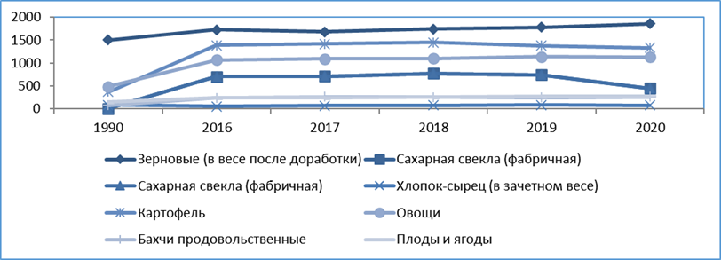 Рис. 3 Динамика производства продукции растениеводства, тыс тонн[vi]