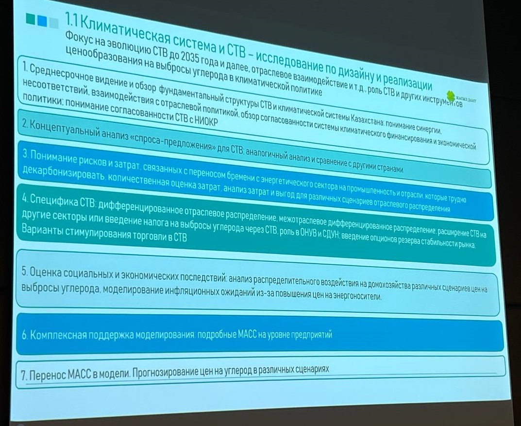 По словам Ерлана Жумабаева, Казахстан находится в авангарде ценообразования на выбросы углерода в Центральной Азии, став первой страной в регионе, создавшей систему торговли квотами на выбросы (СТВ). В условиях усиления глобальных климатических амбиций укрепление системы СТВ Казахстана имеет решающее значение для обеспечения ее эффективности и результативности и соответствия лучшим международным практикам.