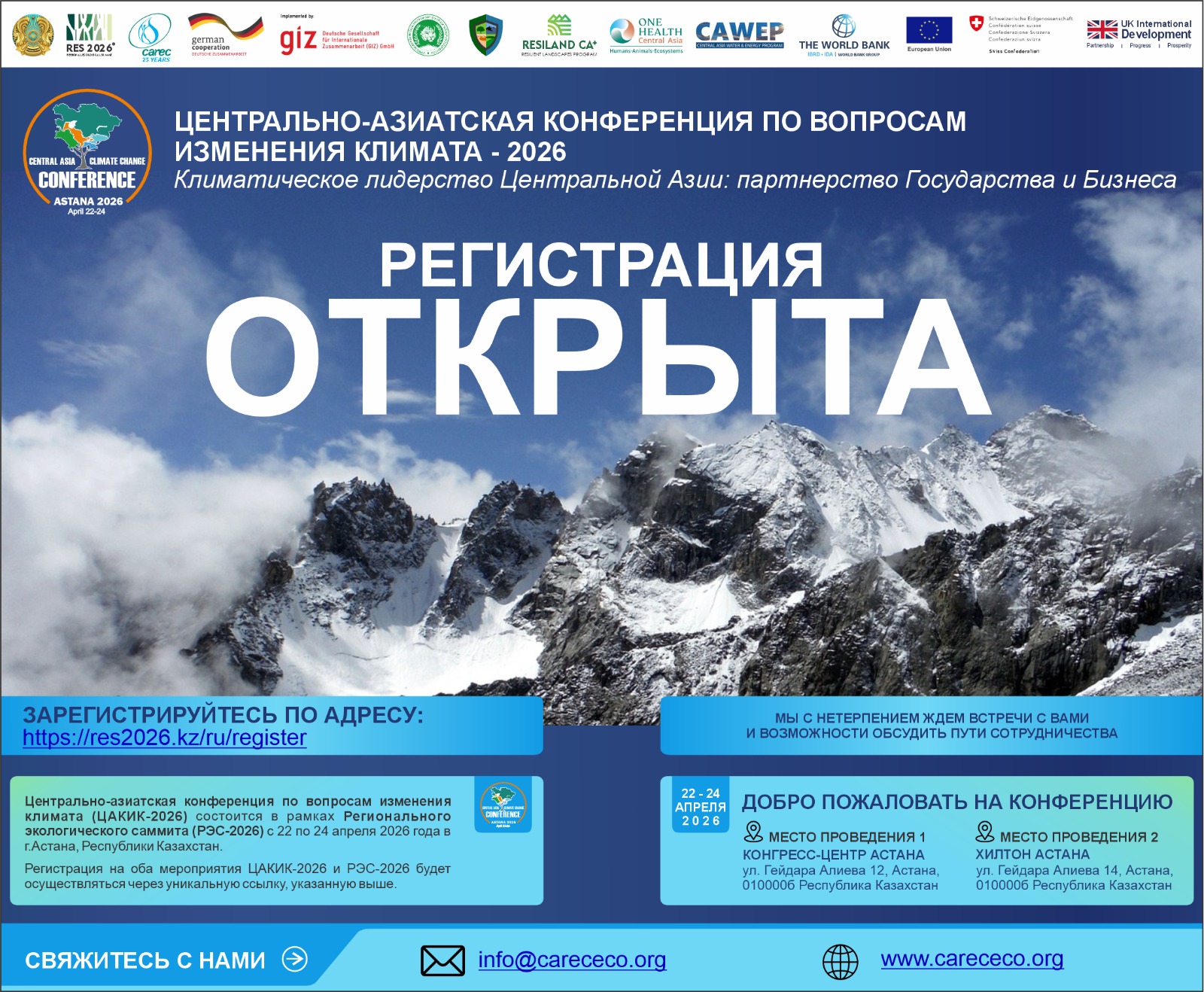 Пройти регистрацию для участия на ЦАКИК-2026 можно также, заполнив специальную форму в разделе «Регистрация», по ссылке: https://www.carececo.org/main/activity/mettings/caccc-2026/.
