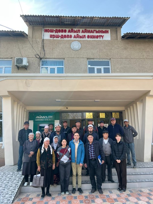 В Кыргызстане проект стартовал в Аксыйском районе Джалал-Абадской области, где состоялись встречи с представителями местных властей и сельских сообществ. Команда проекта во главе с д-ром Нодиром Джанибековым, д-ром Барчынай Кимсановой и д-ром Атабеком Умирбековым (ИАМО) и с участием сотрудников РЭЦЦА провела встречу с акимом Аксыйского района Максатбеком Саргазаковым, руководителем аппарата государственной администрации и главами айыльных аймаков Кош-Добо и Жерге-Тал.