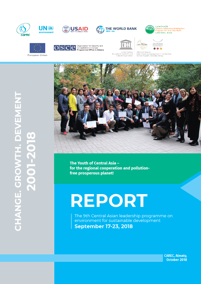 We are pleased to present you the report on the 9th Central Asian Leadership Programme on Environment for Sustainable Development (CALP) held on September 17-23, 2018 in Almaty. This report contains summary and key conclusions of the CALP sessions.