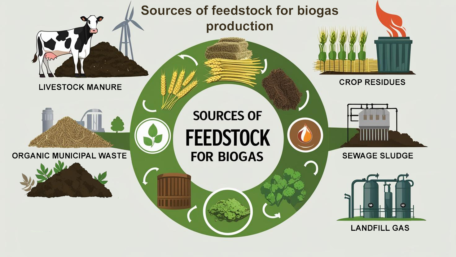 Biogas is a renewable gas generated through the anaerobic fermentation of various types of organic matter. Its primary components are methane (CH₄) and carbon dioxide (CO₂). Common feedstocks include animal manure, sewage, crop residues such as straw, the organic fraction of municipal and industrial waste, and dedicated energy crops like maize and grass silage.