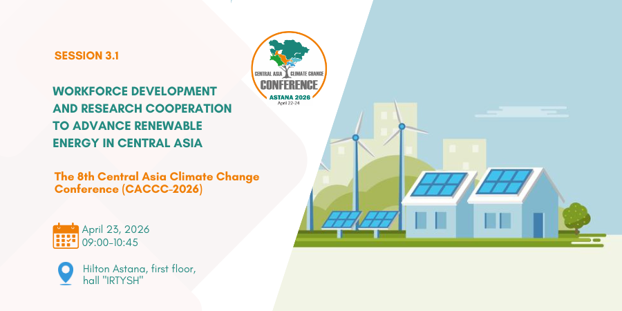 At the Central Asia Climate Change Conference (CACCC-2026), on April 23, 2026, Session 3.1. “Workforce Development and Research Cooperation to Advance Renewable Energy in Central Asia” will take place at the Hilton Astana Hotel (first floor, hall “Irtysh”).