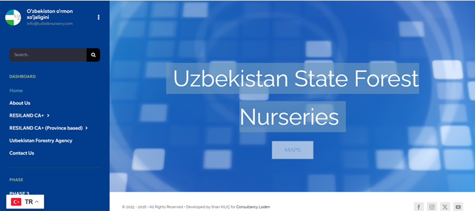 The platform represents a first-of-its-kind solution for Uzbekistan’s forestry sector. Drawing on the extensive experience of Turkey — widely recognized for its advanced nursery production systems and large-scale afforestation achievements — the platform was developed through a structured South–South knowledge exchange between Turkish forestry specialists and the RESILAND project team.