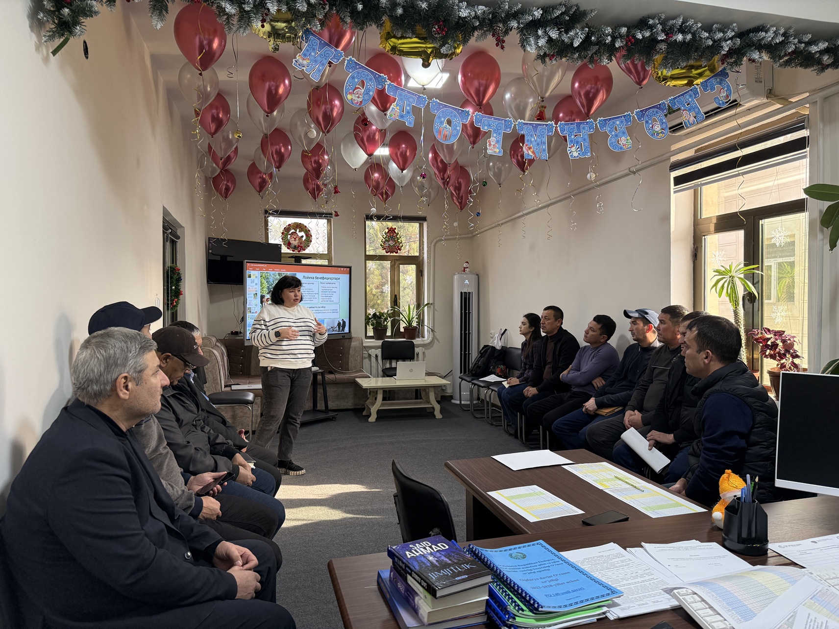 The project’s environmental safety specialist, Dildora Aralova, conducted a study tour for mechanics and forestry managers, outlining World Bank and national requirements for operating heavy machinery, maintaining equipment under harsh climatic conditions, and ensuring proper waste disposal.