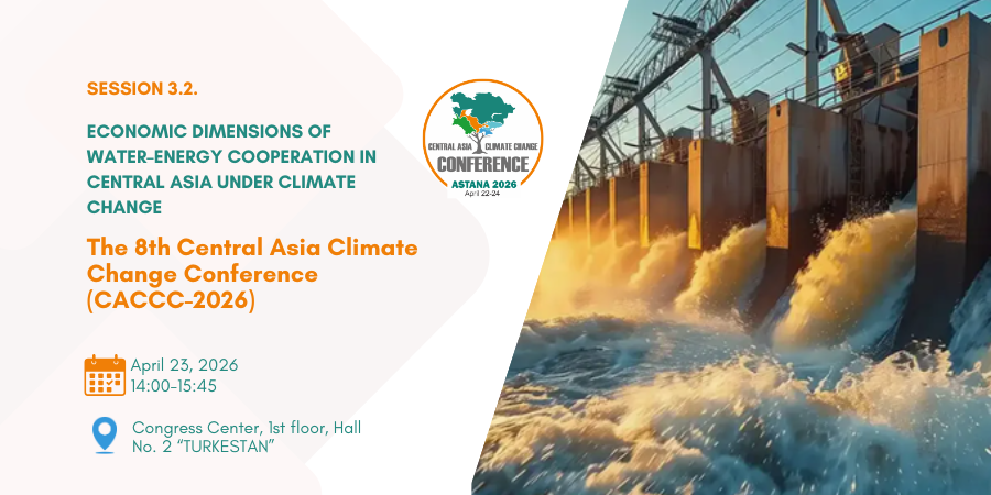 On April 23, 2026, Session 2.3. “Economic Dimensions of Water–Energy Cooperation in Central Asia under Climate Change” of the Central Asia Climate Change Conference will be held at the Congress Center (Turkestan Hall).