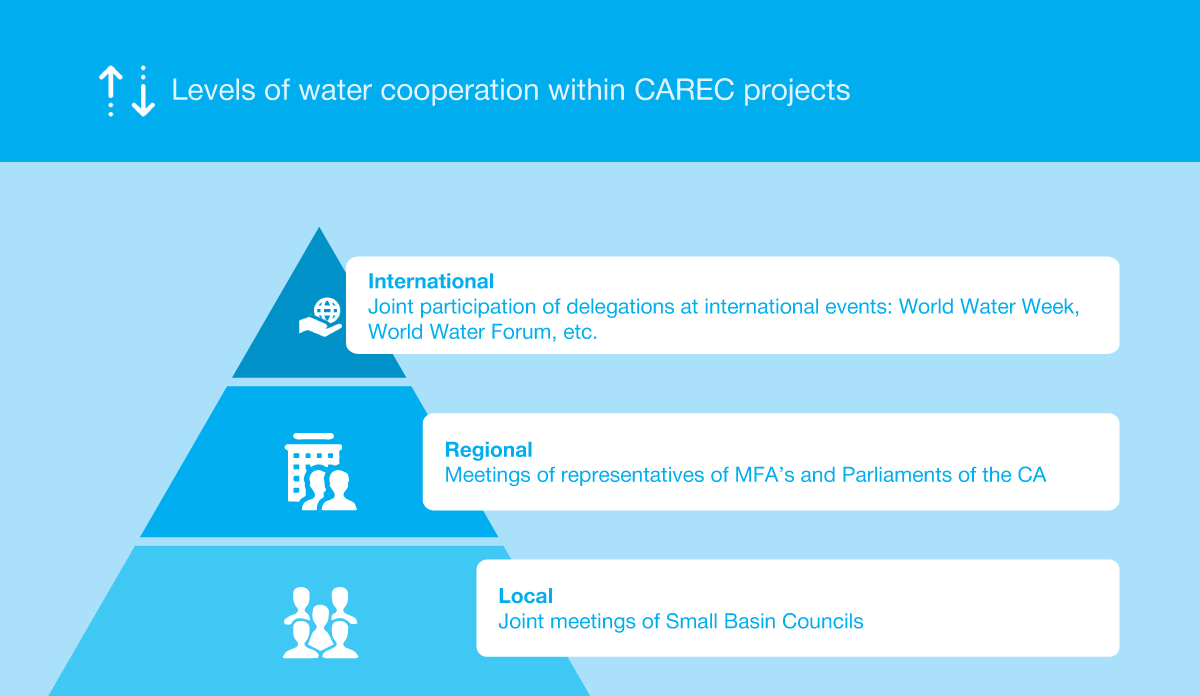 Water cooperation is always reflected in the work of CAREC regional platforms: the meeting of the Ministries of Foreign Affairs and Parliamentarians, CAIEF, CACCC. Moreover, the centre supports the participation of delegations from Central Asian countries in global events: World Water Forum, World Water Week.