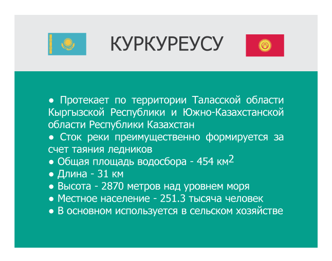 МБС Куркуреусу был создан в 2016 году. Основная цель МБС – это объединение усилий всех участников процесса водопользования для рационального использования водных ресурсов и объектов на основе применения принципов интегрированного управления. Стоит отметить, что одной из наиболее сложных проблем является отсутствие надлежащего мониторинга и управления водными ресурсами. В связи с этим, продолжается процесс бассейнового планирования в бассейне реки Куркуреусу (Казахстанская часть) и проведение необходимых тренингов для членов МБС
