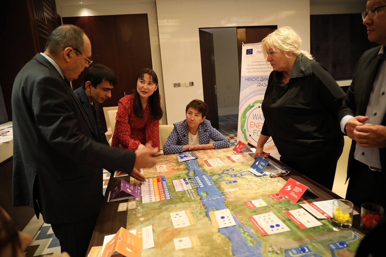 ТАДЖИКИСТАН, ДУШАНБЕ – Сегодня члены Сети Академических Сообществ (САС) Центральной Азии обучались применению подхода Нексус, раскрывающего взаимосвязь «вода-энергия-продовольствие» (ВЭП), в формате интерактивной Игры Нексус. 29 деканов и преподавателей из университетов Центральной Азии, которые готовят специалистов в сфере водных ресурсов, охраны окружающей среды и экономики, разыграли ряд сценариев управления водными, энергетическими и продовольственными ресурсами в странах, расположенных вниз и вверх по течению. Мероприятие было организовано в рамках проекта ЕС «Нексус Диалог в Центральной Азии» в сотрудничестве с проектом USAID по водным ресурсам и окружающей среде и проектом SDC Blue Peace в Центральной Азии.