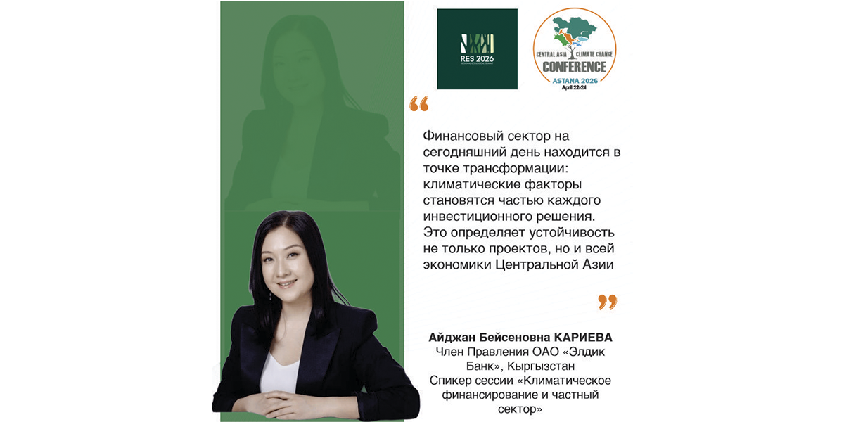 Кариева Айджан Бейсеновна, Член Правления ОАО «Элдик Банк», курирующая направления международного сотрудничества, ESG, инвестиций и климатического финансирования
