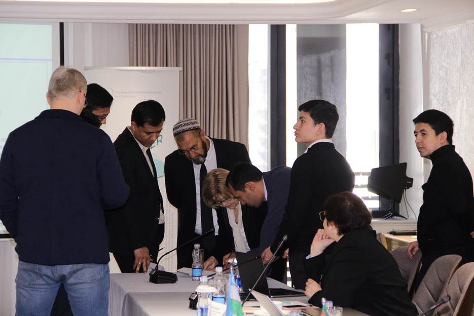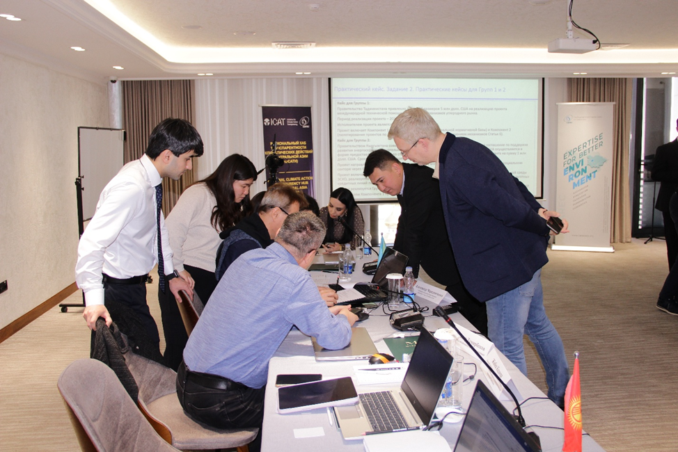 Во время практической части участники работали в группах, обсуждая возможные подходы к применению региональной «зеленой» таксономии и инструментов отслеживания климатического финансирования в странах региона.