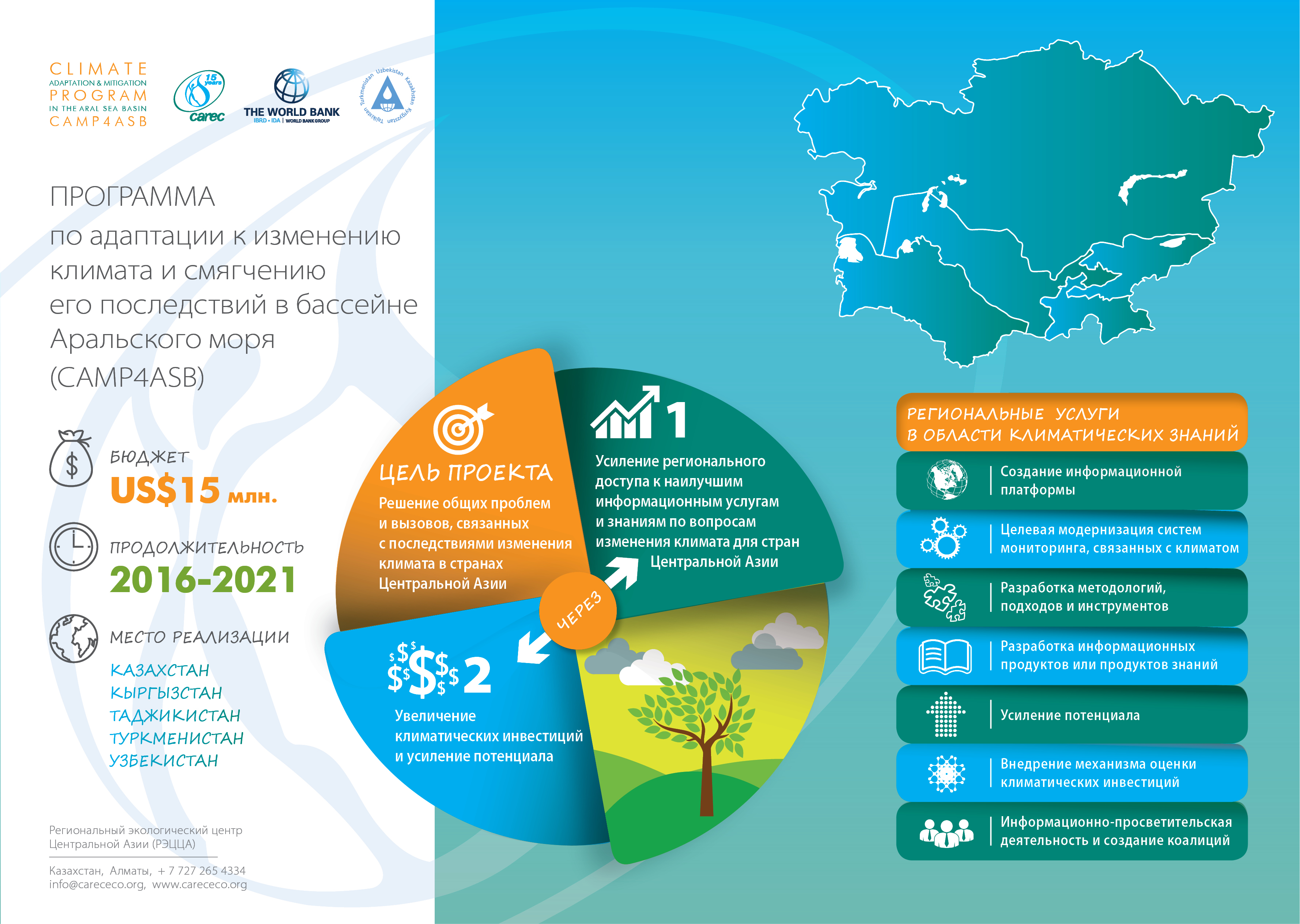 В связи с этим, 4 августа 2016 года стартовал региональный проект «Программа по адаптации к изменению климата и смягчению его последствий в бассейне Аральского моря» (CAMP4ASB), который будет осуществляться на территории стран Центральной Азии на протяжении последующих пяти лет (2016-2021 гг.).