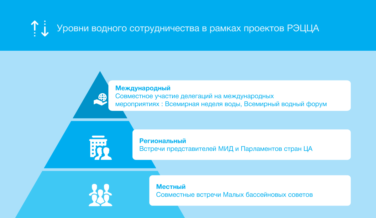 Водное сотрудничество всегда находит отражение в работе региональных площадок РЭЦЦА: встреча МИД и Парламентариев, ЦАМЭФ, ЦАКИК. Более того, центр поддерживает участие делегаций стран Центральной Азии в глобальных мероприятиях: Всемирный водный форум, Всемирная неделя воды.