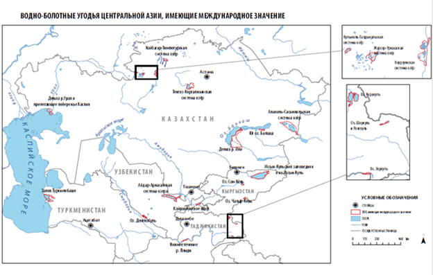 Рисунок 1. Водно-болотные угодья ЦА, имеющие международное значение